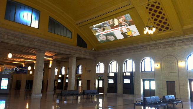 Festival-goers will encounter the Big Wall of Thanks as they enter the Waiting Room at Union Depot. Large projections will fill two ceiling panels in the grand Waiting Room with the images of people who have given to support Northern Spark. You can rest on comfy couches and observe the faces of your friends, neighbors and fellow art-lovers who have helped to create this magical night. And if you’d like to join them up there, volunteers will be on hand to take your donation and snap your picture for the wall. Using software developed by Justin Heideman for his project Big Red Party Button, your photo will be added instantly into the projection.